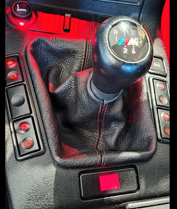 40. New leather shift boot and parking brake boot with red stitching