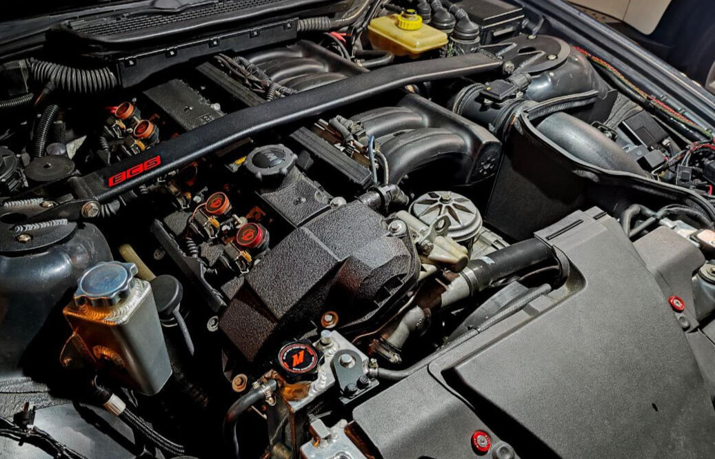 8. Bimmerworld power steering reservoir upgrade with AN Lines